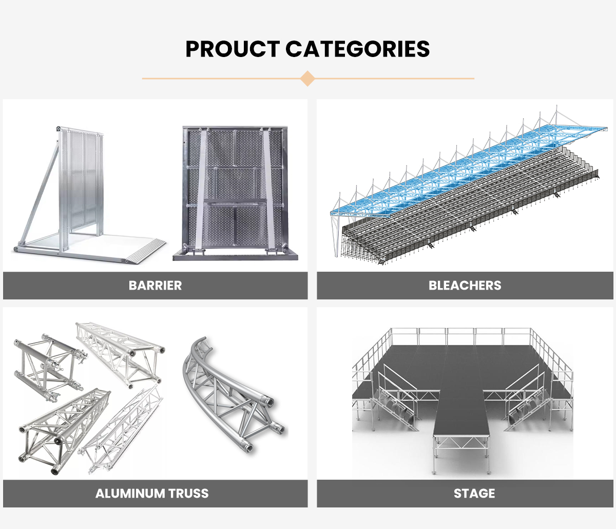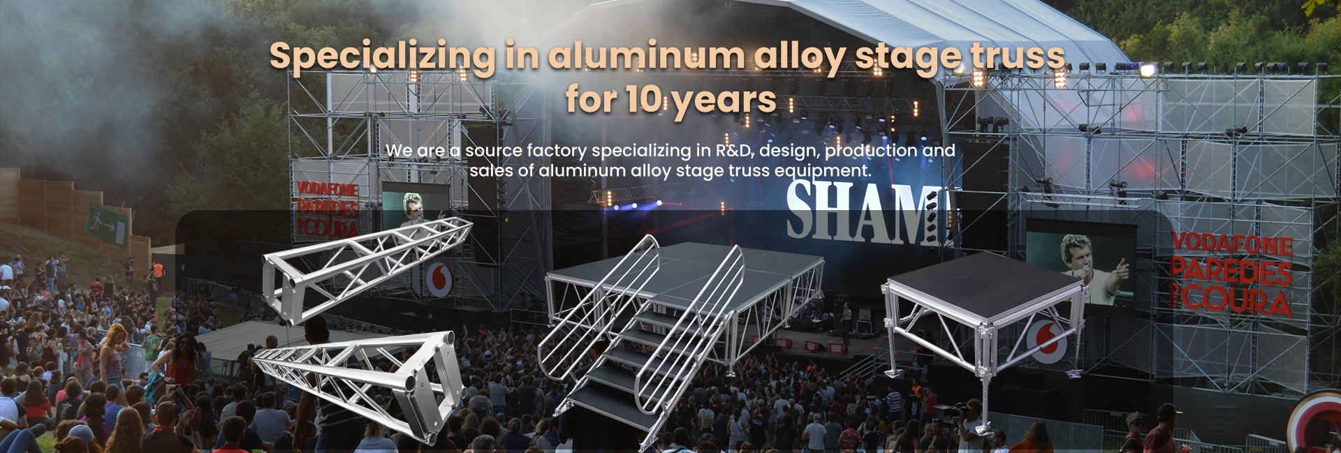 Truss, escenario, gradas, andamios, estuche de vuelo,